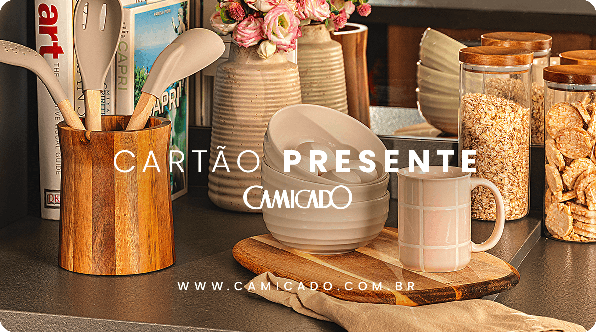 Após a compra do cartão e a aprovação do pagamento, ele será enviado no e-mail da pessoa presenteada. Ele é válido para compras no site ou em qualquer loja Camicado e tem validade de um ano.